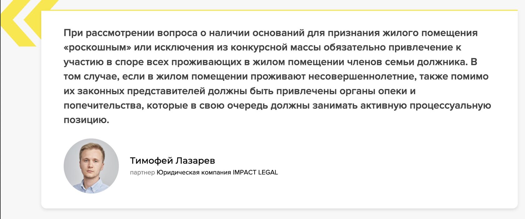 Постановление Арбитражного суда Московского округа от 1 ноября 2025 г. по делу № А40-158912/23 раскрывает материально-правовые и процессуальные аспекты рассмотрения в деле о банкротстве вопроса о признании единственного жилого помещения «роскошным» жильем, отметил Тимофей Лазарев, партнер Юридической компании IMPACT LEGAL.